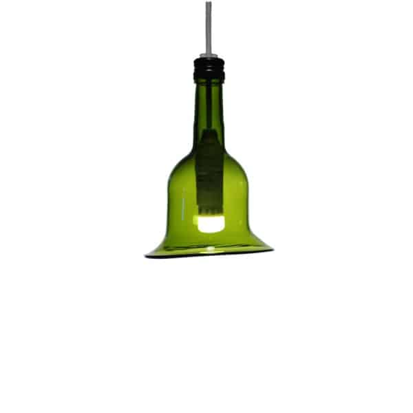 Fönsterlampa tillverkad av en grön vinflaska. Flaskans botten avlägsnas och därefter värms överdelen upp och formas om. När den svalnat efterbearbetas den och en kork med hål, anpassat för en lampsladd, sätts tillbaka.